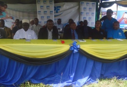 Kutoka Kushoto ni Mh. Diwani Paulo Tunyoni Aliyehudhiria kwa Niaba ya Mh. Mwenyekiti wa Halmashauri (W), Anayefuatani Katibu wa CCM (W) Bw. Pasua, Mh. Mkuu wa Wilaya ya Kiteto Tumaini Magessa, Kisha M...