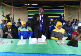 Mgeni Rasmi Mh. Mkuu wa Wilaya ya Kiteto Mh.Tumaini Magessa akihutubia wafanyakazi na wananchi wa Wilaya ya Kiteto katika kilele cha siku ya wafanyakazi Duniani Mei Mosi iliyofanyika Kiwilaya Kiteto k...