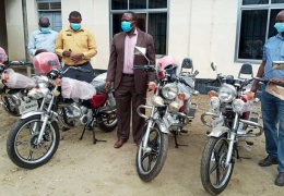Mh.Mkuu wa Wilaya ya Kiteto Mhandisi Tumaini Magessa (aliyevaa suti) Wakati wa Makabidhiano Hayo na Maafisa Tarafa Hao Tarehe 13.05.2020