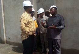 Naibu waziri wa Or -TAMISEMI Mhe. Mwita M. Waitara akitoa maelekezo kuhusu ujenzi wa jengo jipya la ofisi za halmashauri ya wilaya ya Kiteto , wakati wa ziara yake wilayani Kiteto mapema leo.