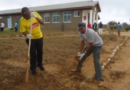 Mkurugenzi Mtendaji wa halmashauri ya wilaya ya Kiteto (aliyeshika mfagio kushoto) Ndg. Tamim H. Kambona akijumuika na watumishi wengine katika kufanya usafi wa mazingira katika Hospit...