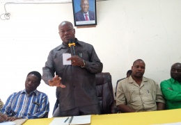 Naibu Waziri wa OR- TAMISEMI Mhe. Mwita M. Waitara akizunguza katika kikao chake na watumishi kilichofanyika ndani ya ukumbi wa halmashauri ya wilaya ya Kiteto mapema leo.Waliokaa upande w...