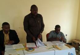 Mkuu wa wilaya ya Kiteto Mhe. Tumaini Magesa akifungua kikao kazi cha mafunzo ya awali ya mipango ya bajeti ya masuala ya lishe ngazi ya halmashauri. Waliokaa kushoto ni kaimu Katibu Tawala ( W) &n...