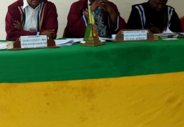 Mwenyekiti wa halmashauri ya wilaya ya Kiteto Mhe. Lairumbe Mollel akiongoza kikao cha baraza la madiwani kilichofanyika katika ukumbi wa halmashauri ya wilaya ya Kiteto. Upande wake wa kulia ni makam...