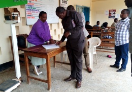 Mkuu wa wilaya ya Kiteto Mhe Tumaini Magessa akikagua Kitabu cha mahudhurio ya watumishi wa hospitali ya wilaya ya Kiteto wakati wa ziara yake hospitalini hapo mchana wa leo.