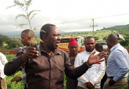 Mkuu wa wilaya ya Kiteto Mhe. Tumaini Magessa akitoa maelekezo kuhusu namna ya kutekeleza zoezi la upandaji miti.Katika uzinduzi wa zoezi hilo uliofanyika katika eneo la mlima simu - kijij...